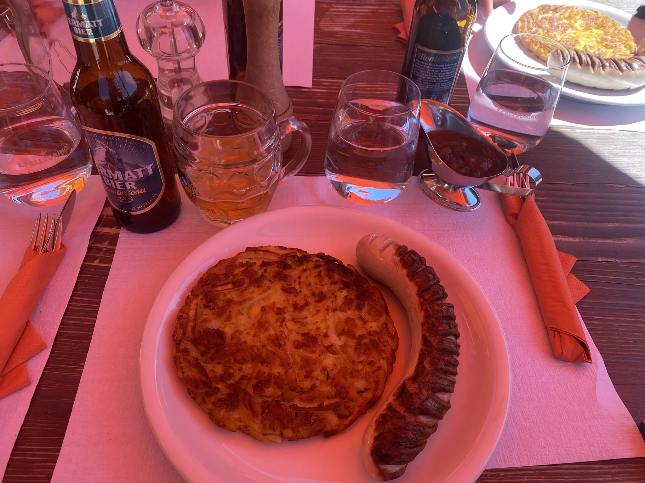 The food at the Hörnli Hut (Hörnlihütte) offers a warm and hearty respite for hikers and climbers after their challenging ascent. Serving traditional Swiss alpine cuisine, the hut's menu features comforting dishes like Rösti, a crispy potato dish, and savory soups, perfect for refueling in the mountain air.